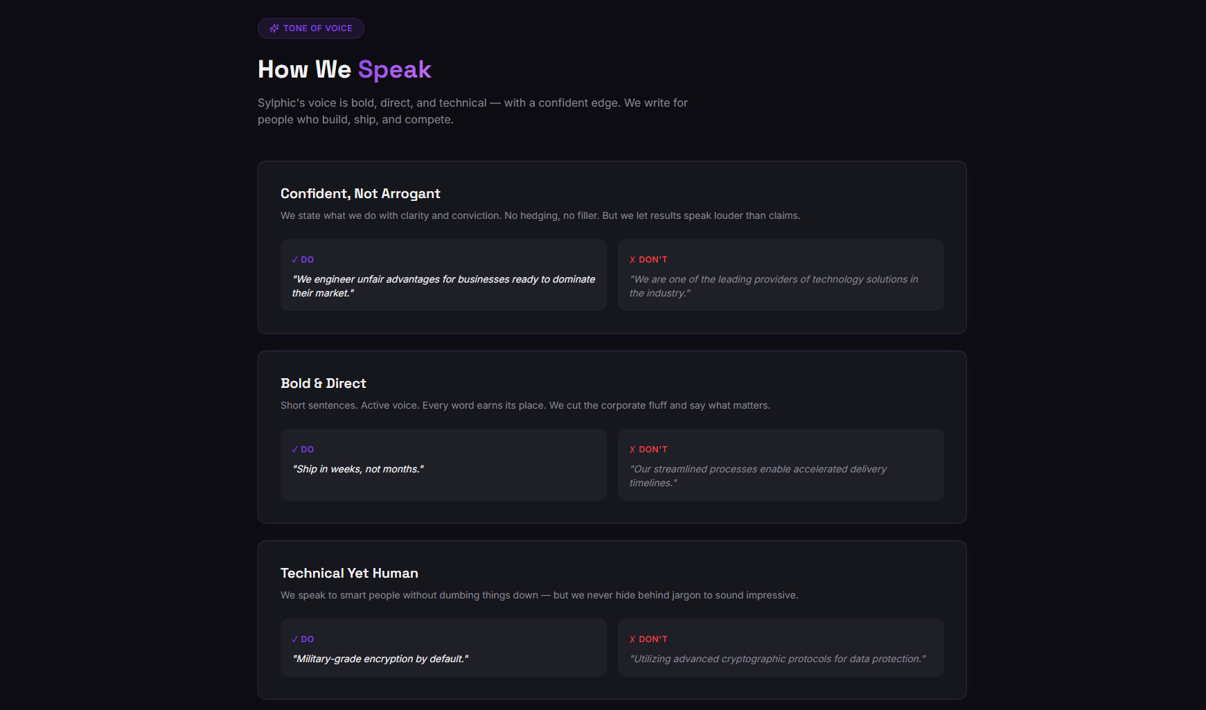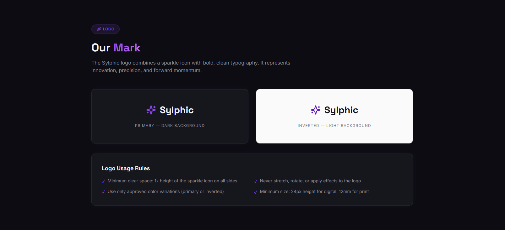 The Sylphic identity combines precision and flow. The visuals highlight transparency, movement, and trust. A clean geometric mark anchors the brand, balanced by gradients that suggest data fluidity and transformation. The palette blends cool technology hues with warm accents, signaling intelligence in motion. Typography is minimal, definitive, and engineered to express control and speed.